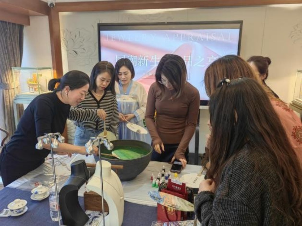 除了養(yǎng)生課堂,活動(dòng)還特別設(shè)置了漆扇漢服體驗(yàn)環(huán)節(jié)??蛻魝兩碇A美漢服,手持親手繪制的精美漆扇,仿佛穿越回古代,親身體驗(yàn)了中華傳統(tǒng)文化的獨(dú)特魅力。在這個(gè)過(guò)程中,客戶們不僅放松了心情,還增進(jìn)了彼此之間的交流和友誼。大家紛紛拍照留念,記錄下這難忘的瞬間。
