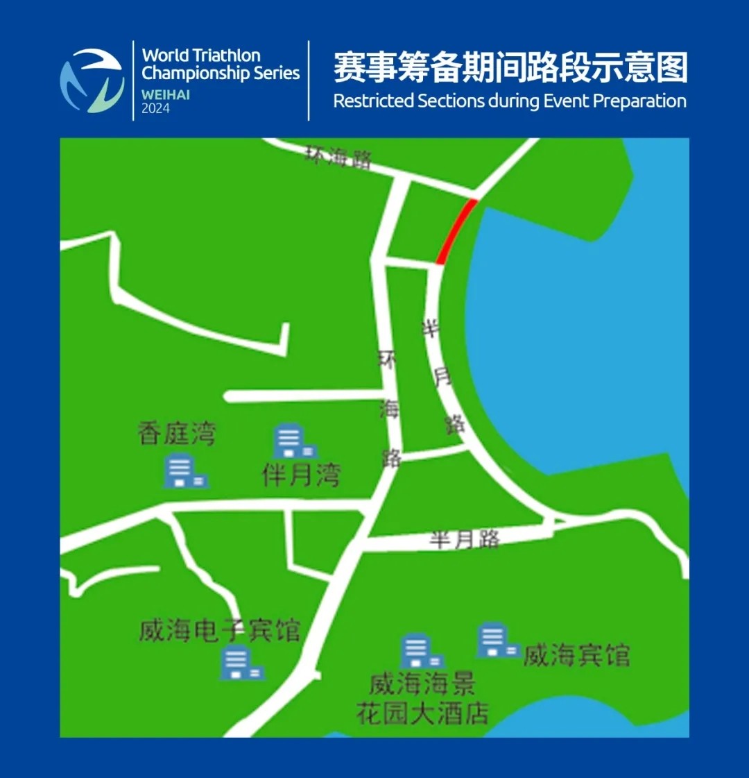 (一)賽事籌備期間:1.管制時(shí)間:9月23日7:00至9月26日全天。2.管制路段:環(huán)翠區(qū)半月灣半月路部分路段。具體路線示意圖: