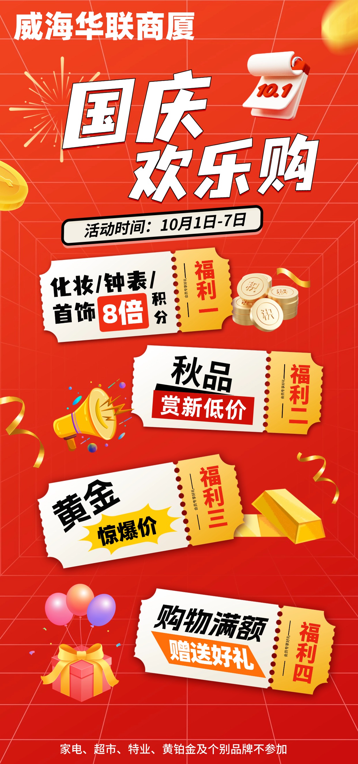 10月1日-7日,威海華聯(lián)商廈國慶歡樂購
