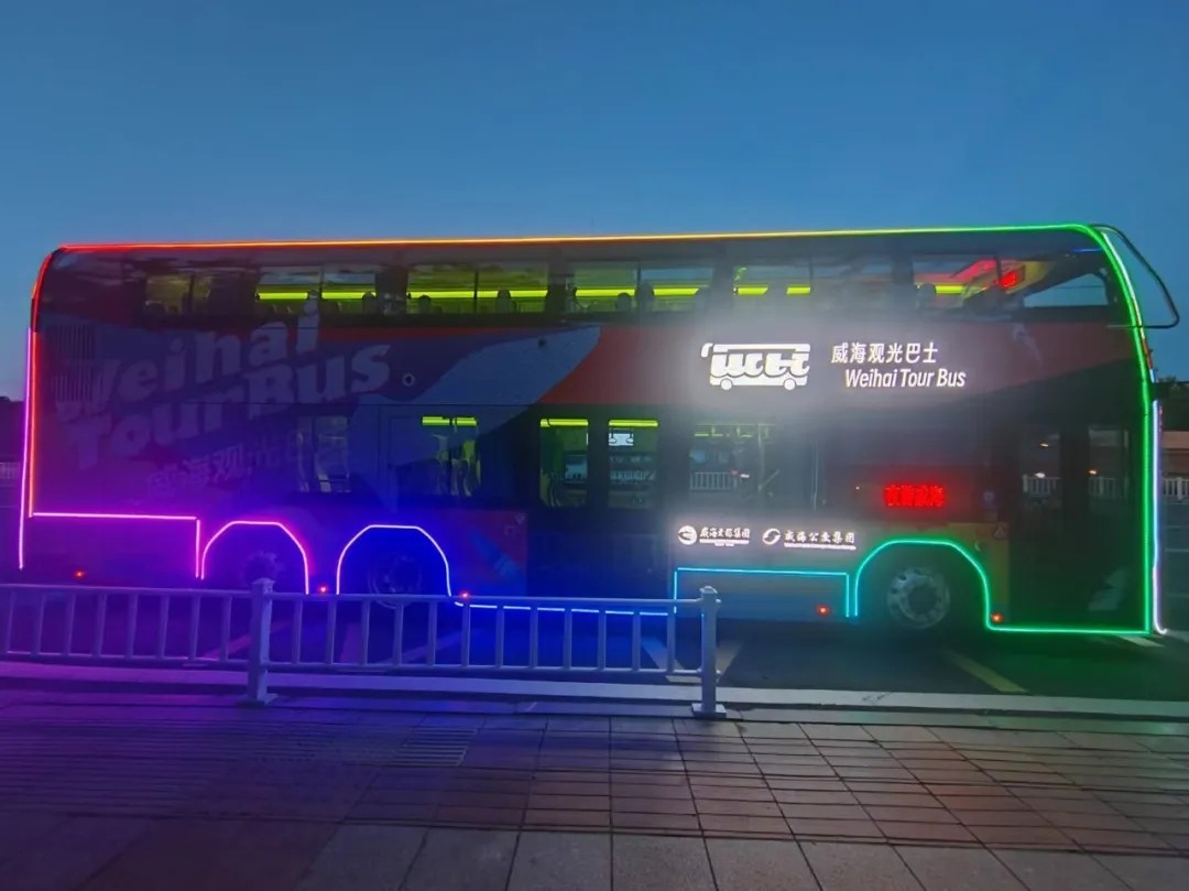 當(dāng)夜幕降臨,威海的燈火逐漸點(diǎn)亮,這座城市展現(xiàn)出了不同于白日的迷人魅力。邀請(qǐng)您乘坐威海雙層觀光巴士,開啟一場(chǎng)別開生面的夜游之旅。