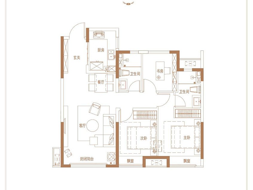 在戶型設計方面,E戶型是其主力戶型之一,該戶型為三居室、南北設計,長玄關(guān)設計演繹通透到底的功能沒學,衛(wèi)生間干濕分離,餐客廚三位一體,打造恰到好處的開放式體驗。