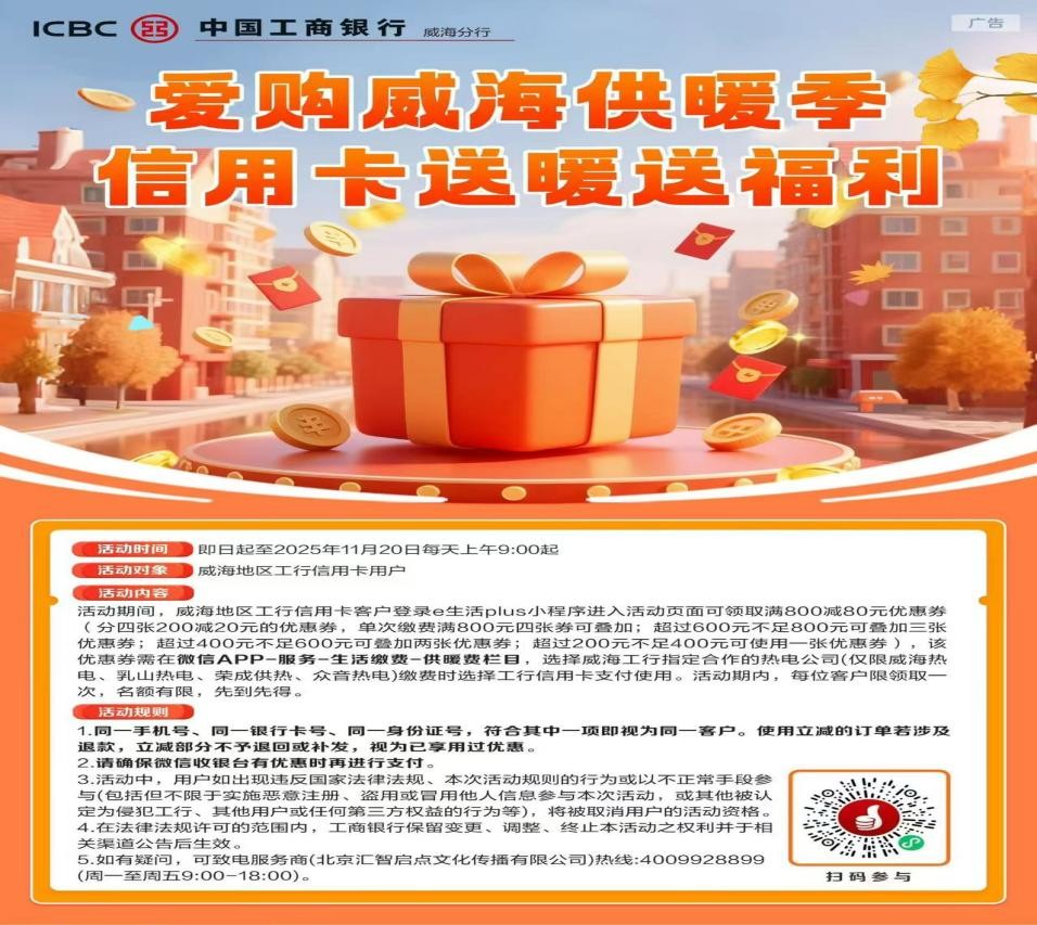 為釋放居民消費潛力,工行威海分行聚焦市民“衣食住行”核心需求,構建起“供暖繳費減負+家電國補加碼+場景消費煥新”三大優(yōu)惠矩陣,讓金融紅利精準滴灌威海千家萬戶。