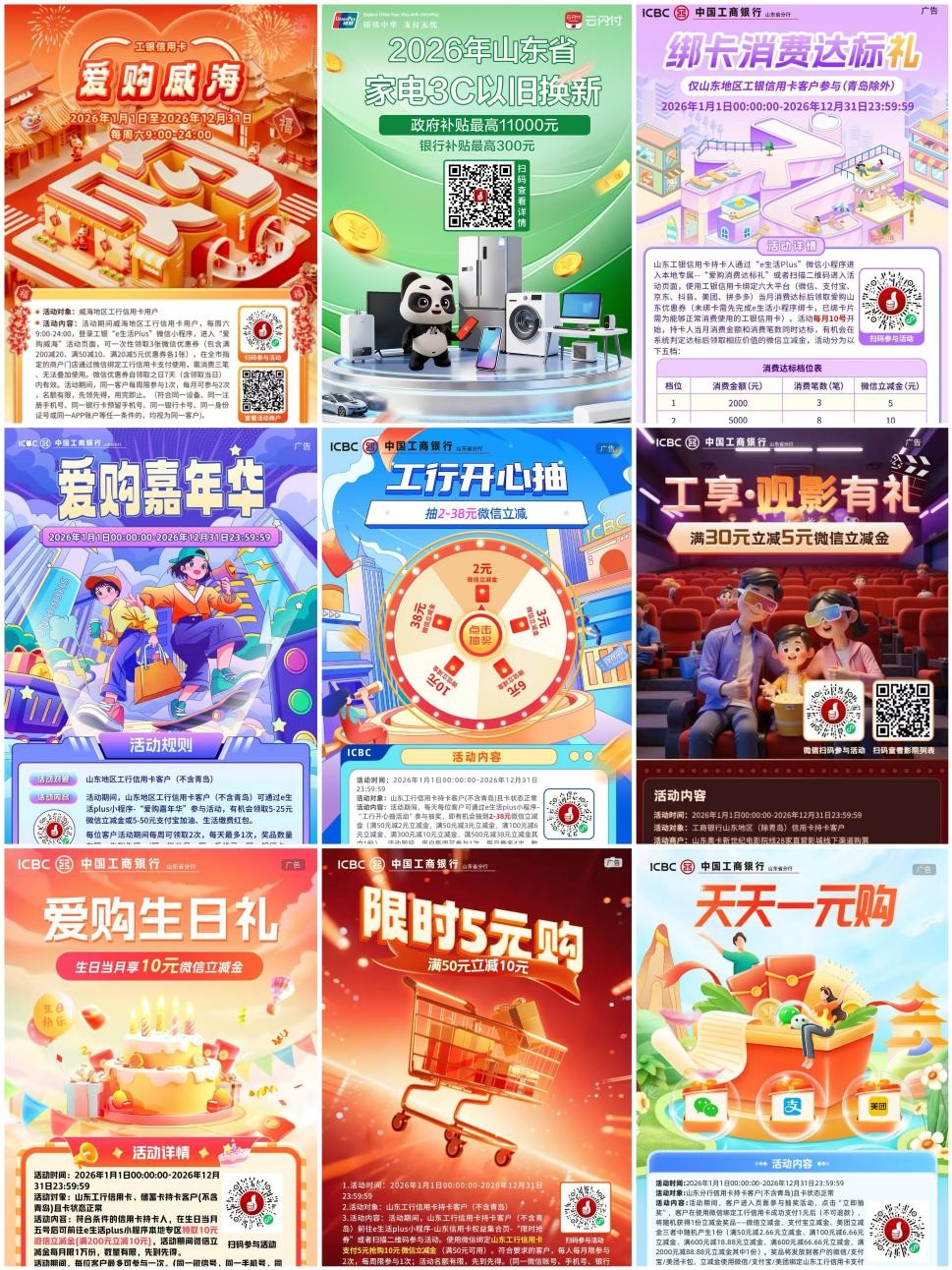春潮涌動處,民生答卷新。近年來,站在激發(fā)消費活力賽道上,中國工商銀行威海分行始終堅守“金融為民”初心,立足威海本地民生需求,將普惠金融服務與地方經濟發(fā)展深度融合。精準發(fā)力供暖繳費、家電更新、商超餐飲等核心消費場景,推出系列重磅優(yōu)惠活動,以“真金白銀”點燃市民消費熱情,以大行擔當書寫著服務威海高質量發(fā)展的生動答卷。