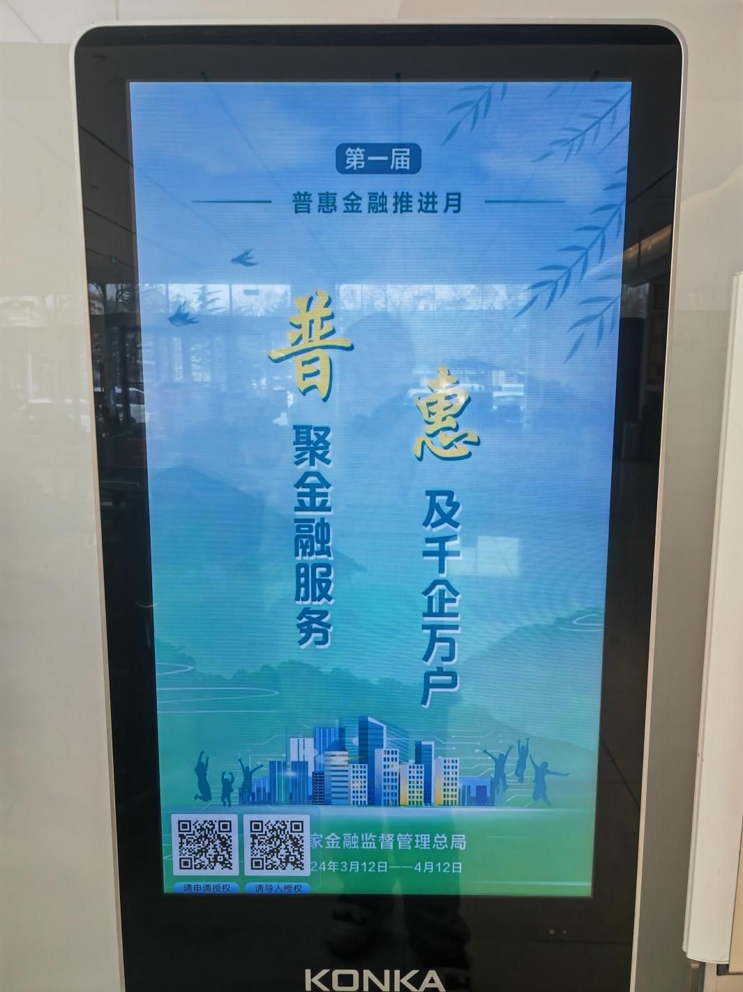 圍繞“普聚金融服務(wù),惠及千企萬(wàn)戶”活動(dòng)主題,在轄內(nèi)多個(gè)網(wǎng)點(diǎn)電子屏統(tǒng)一布放國(guó)家金融監(jiān)管總局下發(fā)的宣傳海報(bào),LED屏滾動(dòng)播放“普惠金融推進(jìn)月”、“普聚金融服務(wù),惠及千企萬(wàn)戶”等宣傳信息,通過(guò)多種形式的宣傳活動(dòng),積極對(duì)接市場(chǎng)主體和人民群眾金融需求,宣傳介紹普惠金融政策和產(chǎn)品,以高質(zhì)量的金融服務(wù),為服務(wù)實(shí)體經(jīng)濟(jì)發(fā)展貢獻(xiàn)招行力量!