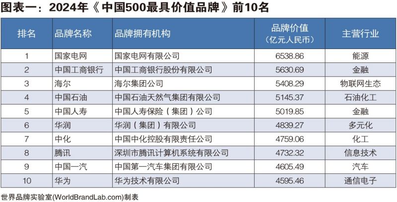 世界品牌實(shí)驗(yàn)室發(fā)布2024年中國500最具價值品牌,國家電網(wǎng)、中國工商銀行和海爾名列三甲,108個中國品牌的價值超過1000億。