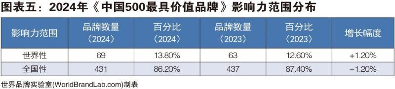 據(jù)世界品牌實(shí)驗(yàn)室的專家組分析,一個區(qū)域的競爭實(shí)力,主要取決于其比較優(yōu)勢,而品牌效益直接影響著地區(qū)比較優(yōu)勢的形成和發(fā)展。品牌是一個地區(qū)發(fā)展的重要標(biāo)志,品牌與區(qū)域經(jīng)濟(jì)的增長是相互聯(lián)動的。從本屆《中國500最具價值品牌》區(qū)域分布來看,北京有91個品牌入選,名列第一,因?yàn)橼A利能力強(qiáng)的央企總部集中在北京;廣東和上海分別有79個和42個品牌入選,位居第二和第三。根據(jù)入選品牌影響力范圍大小,可按照全國性、世界性品牌進(jìn)行劃分。榜單中具有全國范圍影響力的品牌有431個,占86.20%;具有世界性影響力的品牌數(shù)為69個,占13.80%。